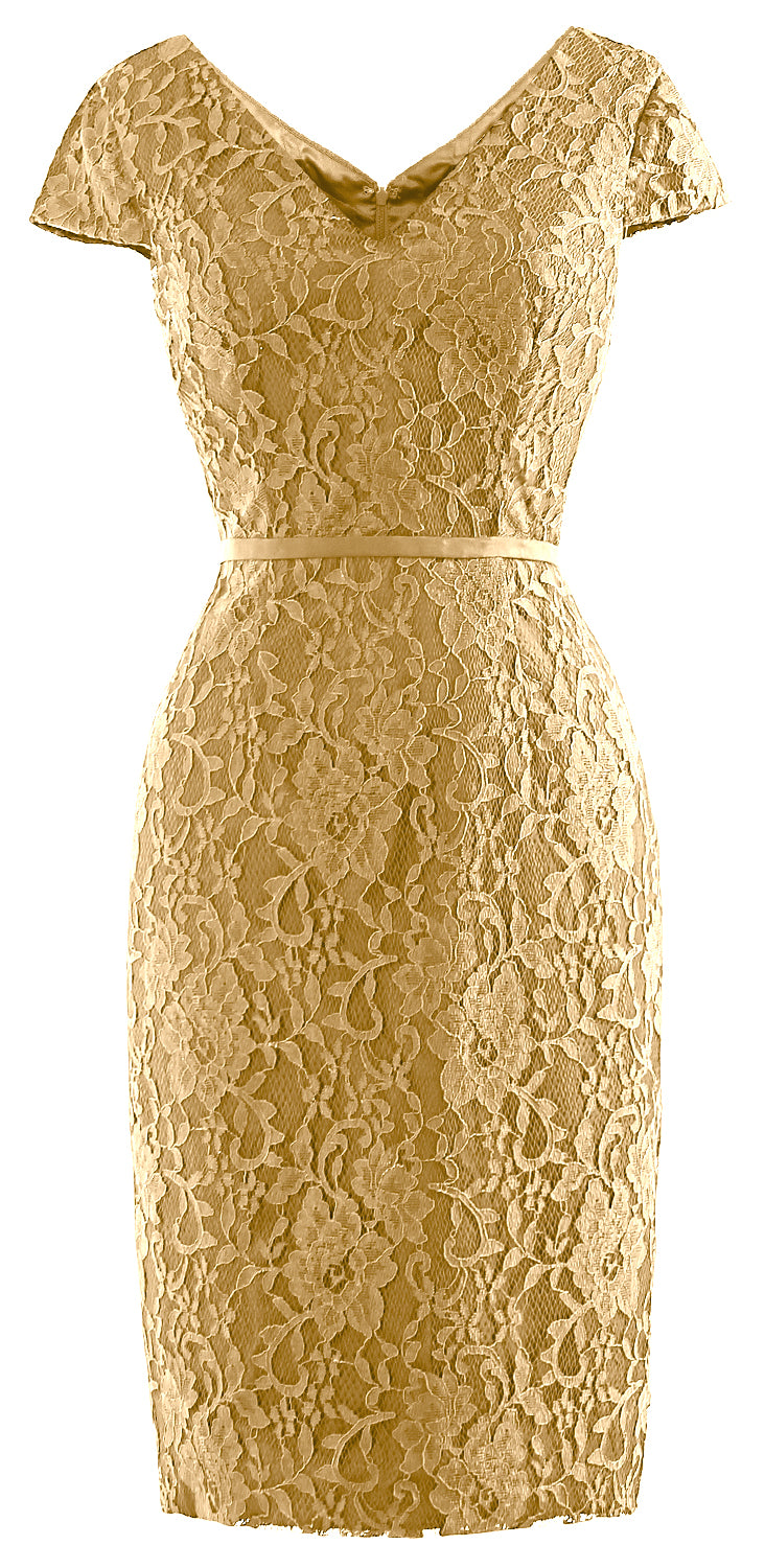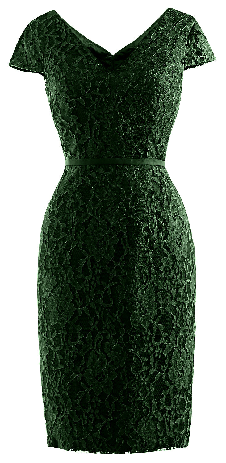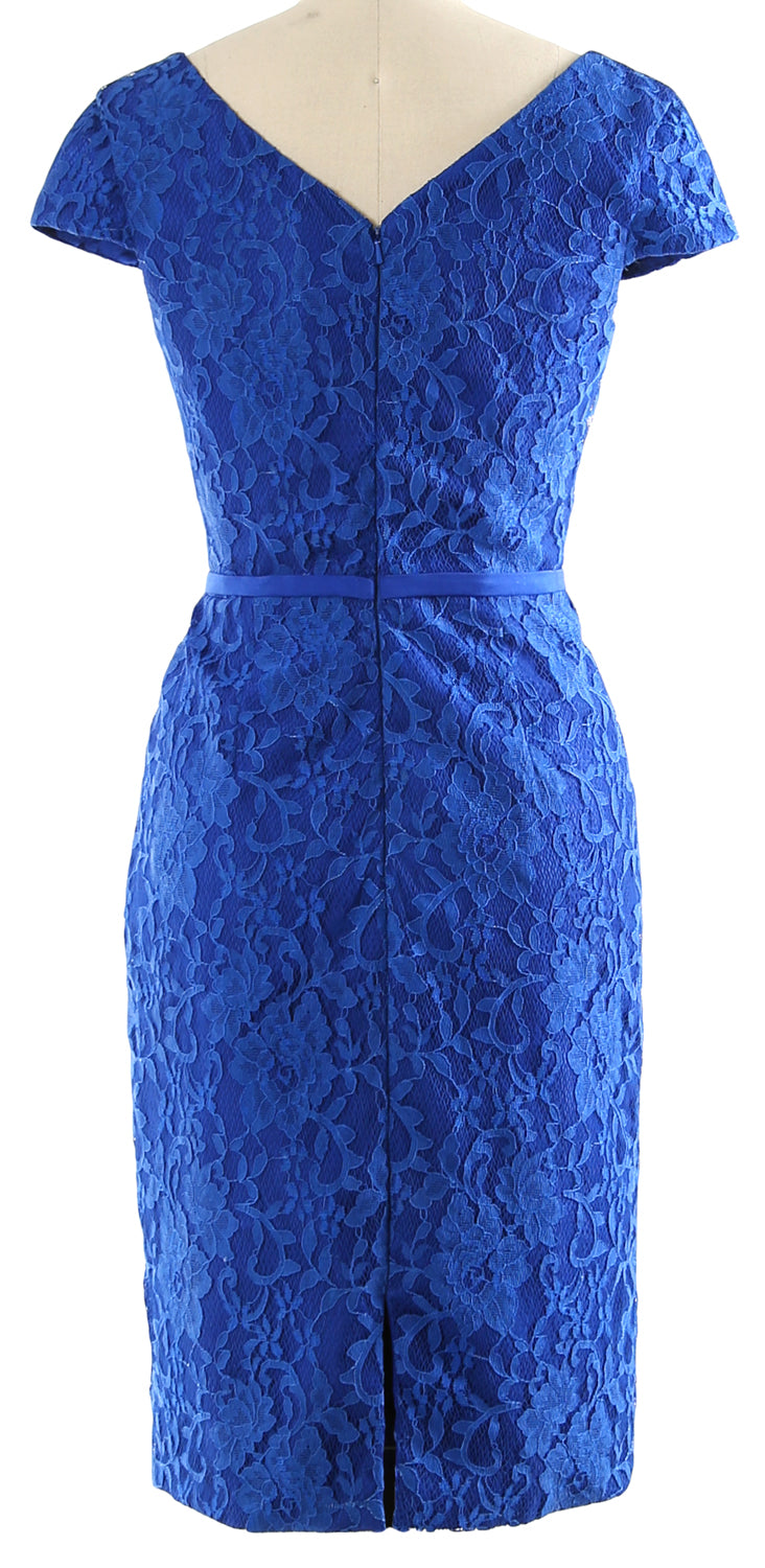 This cocktail dress showcases a V neckline. A floral lace wrap over knee-lenght dress. This lovely dress has fitted bodice to flatter your gorgeous silhouette.