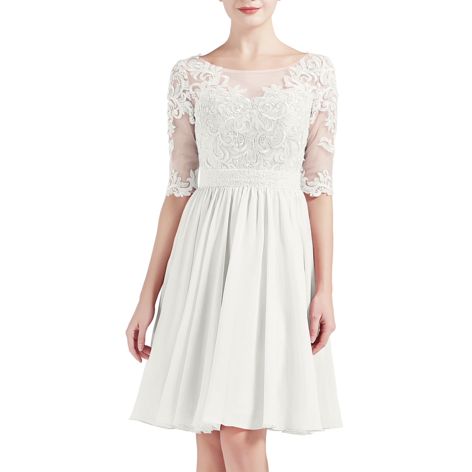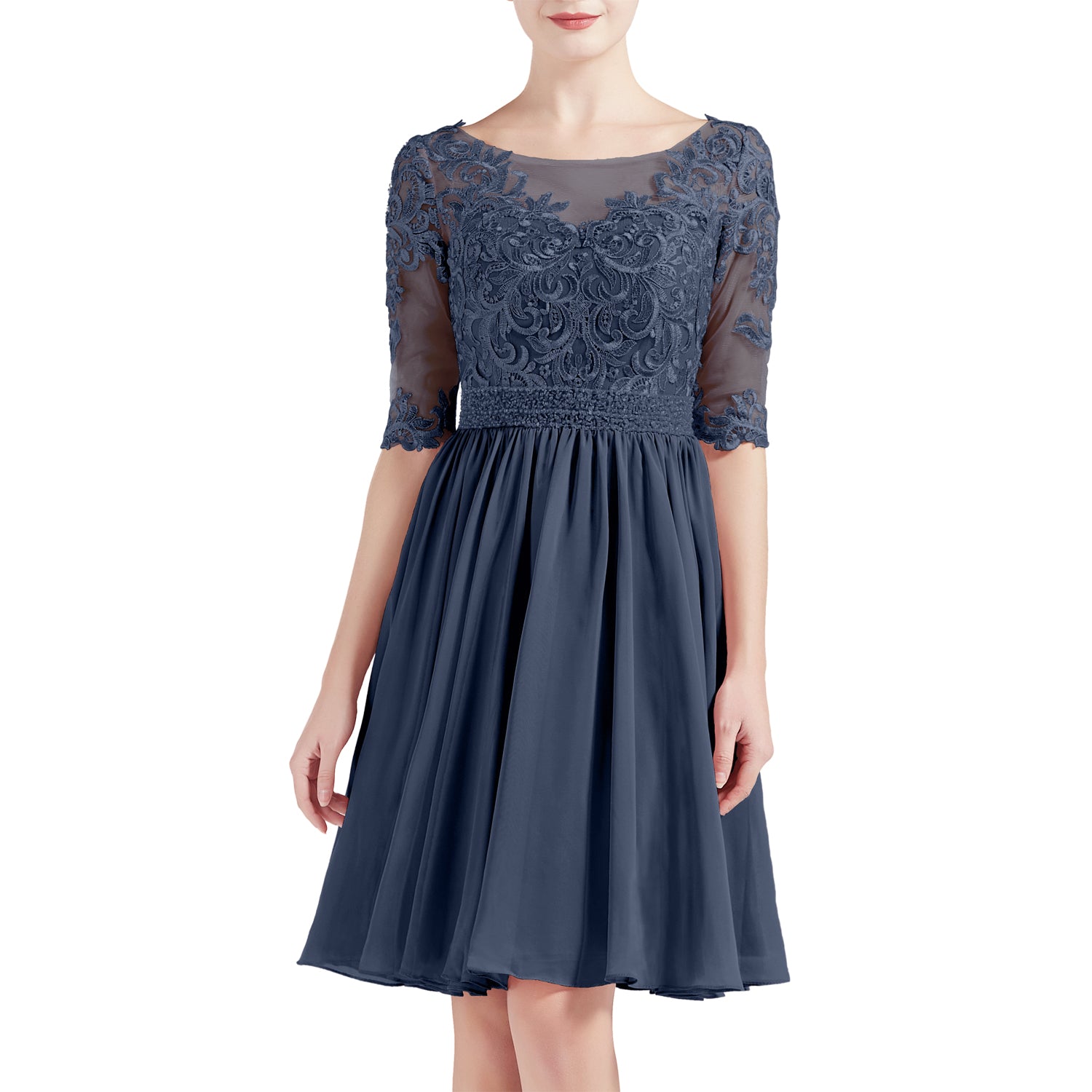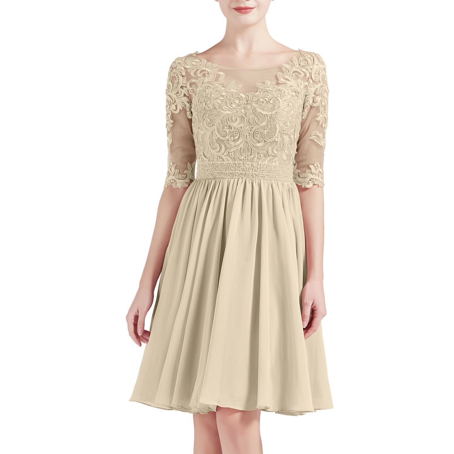 MACloth Women Half Sleeves Short Lace Beading Boat Neckline Mother of Bride Dresses Wedding Bridal Party