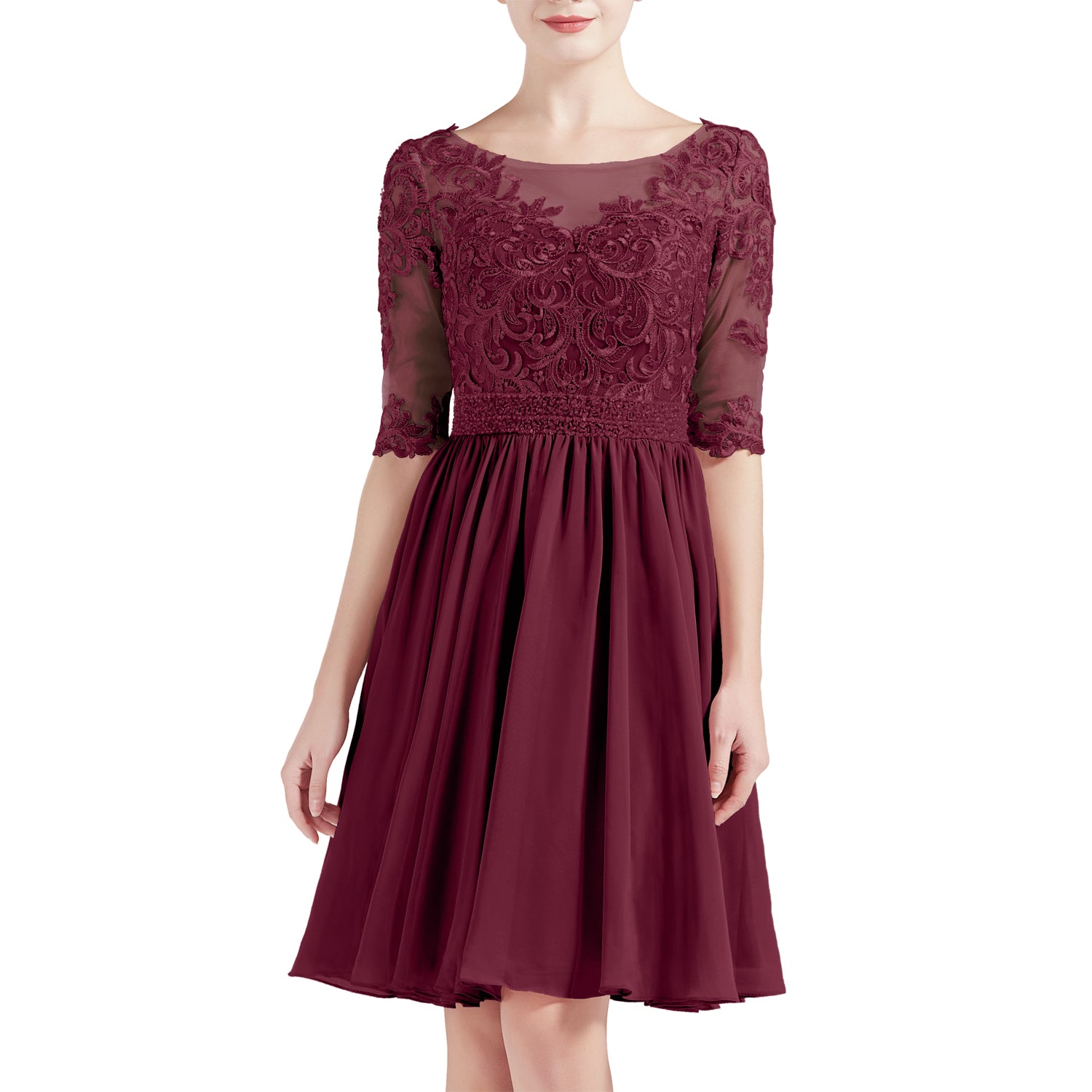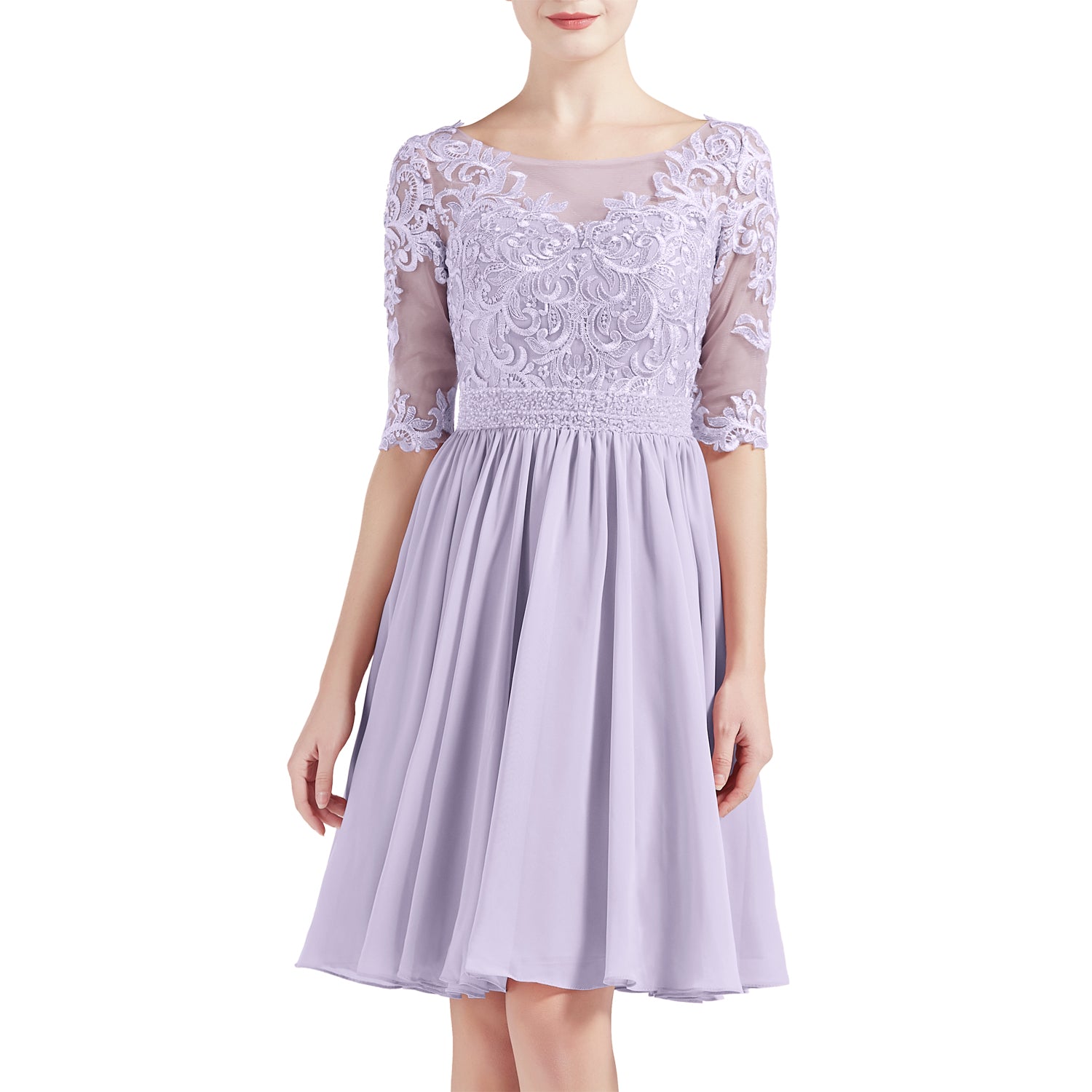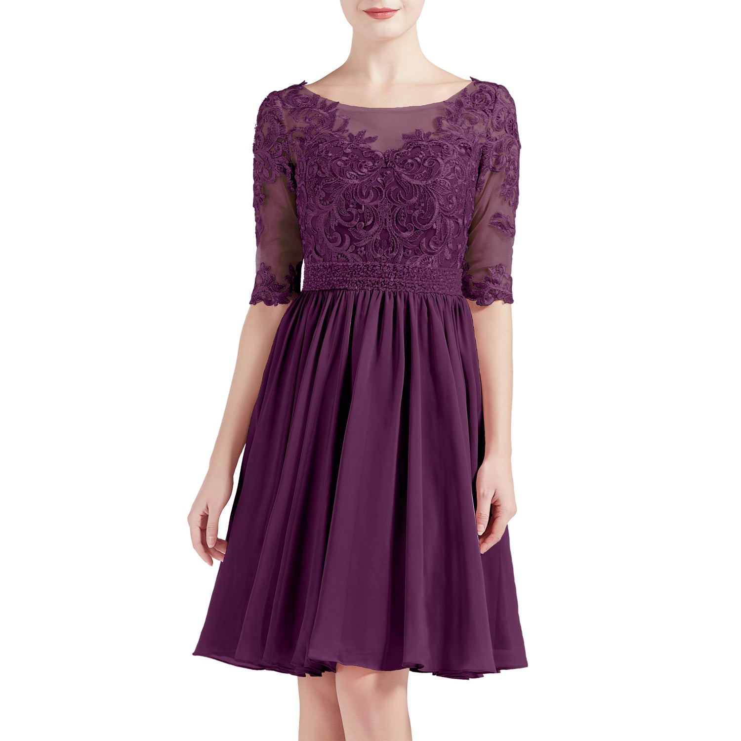 MACloth Women Half Sleeves Short Lace Beading Boat Neckline Mother of Bride Dresses Wedding Bridal Party