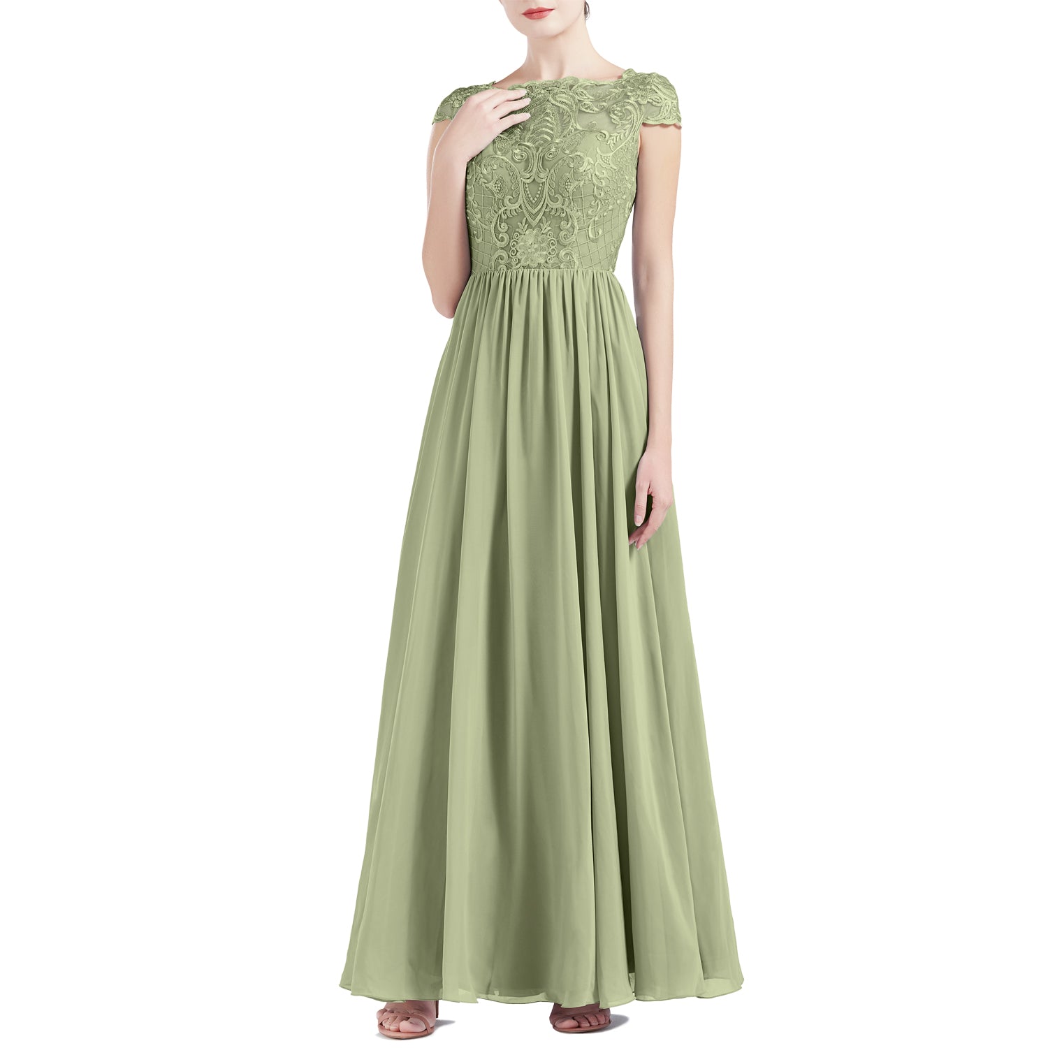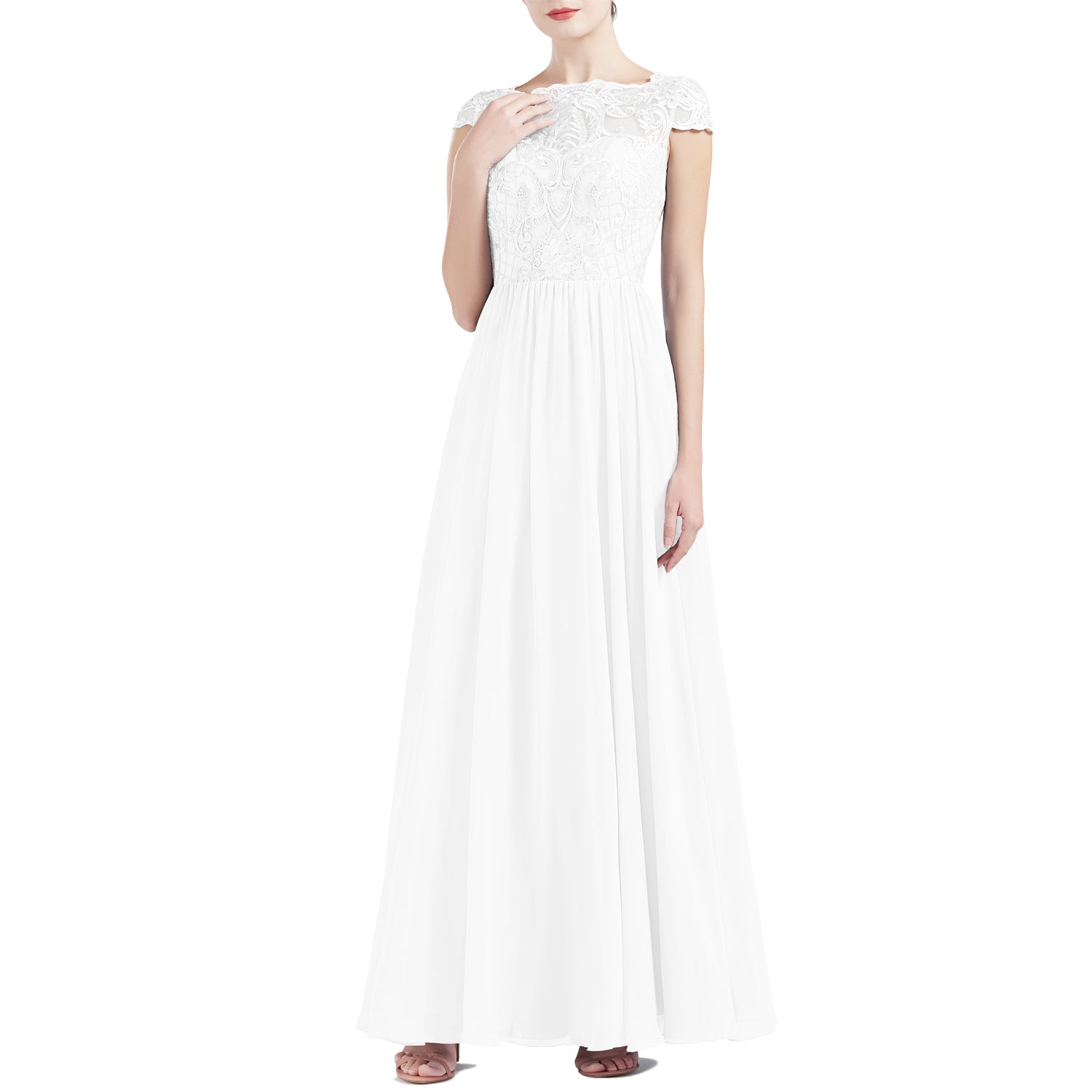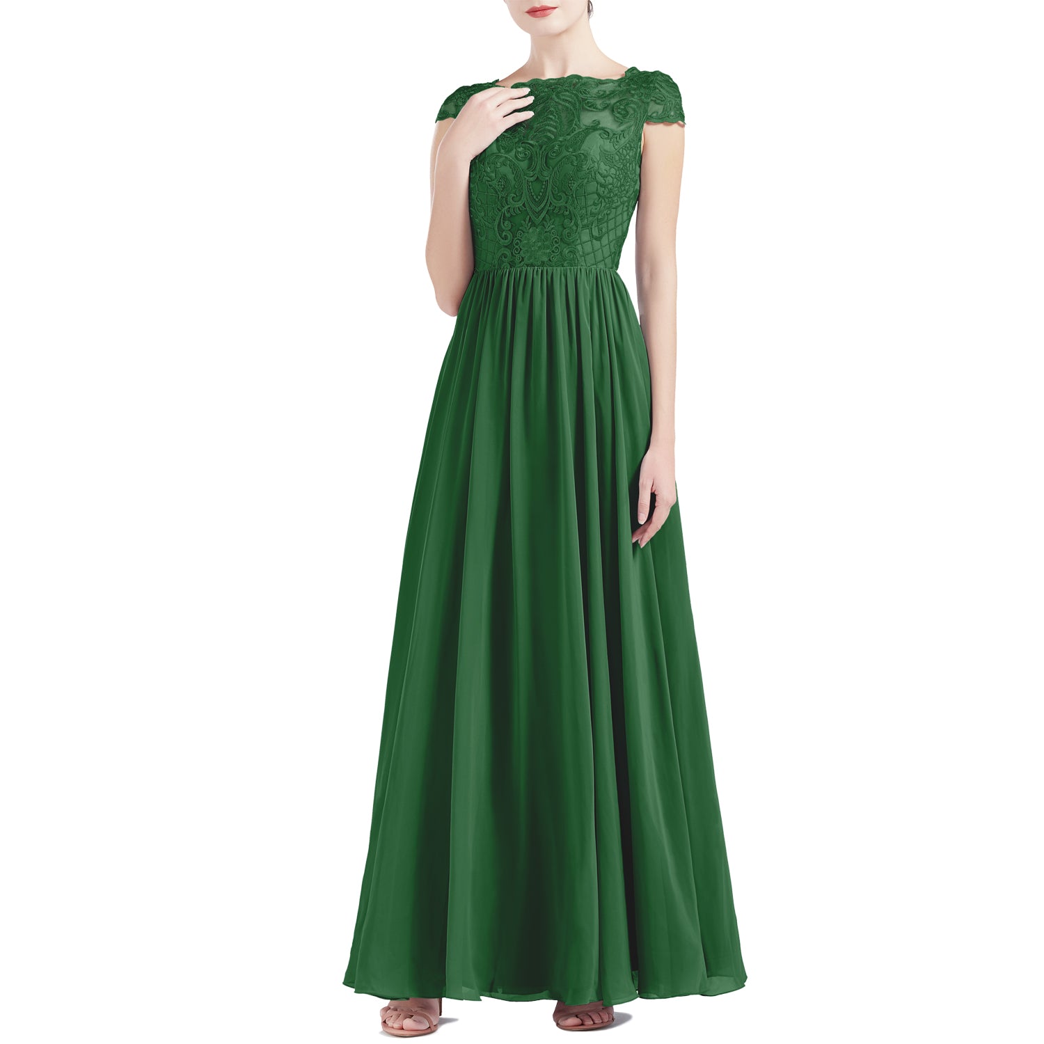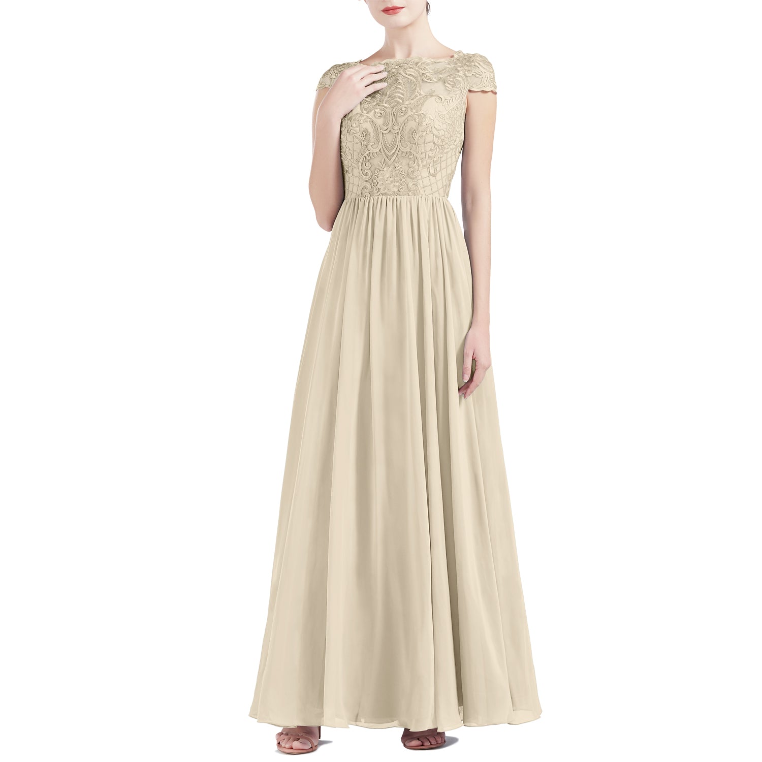 MACloth Women Cap Sleeve Scoop Lace Long Wedding Mother Bride Dresses Formal
