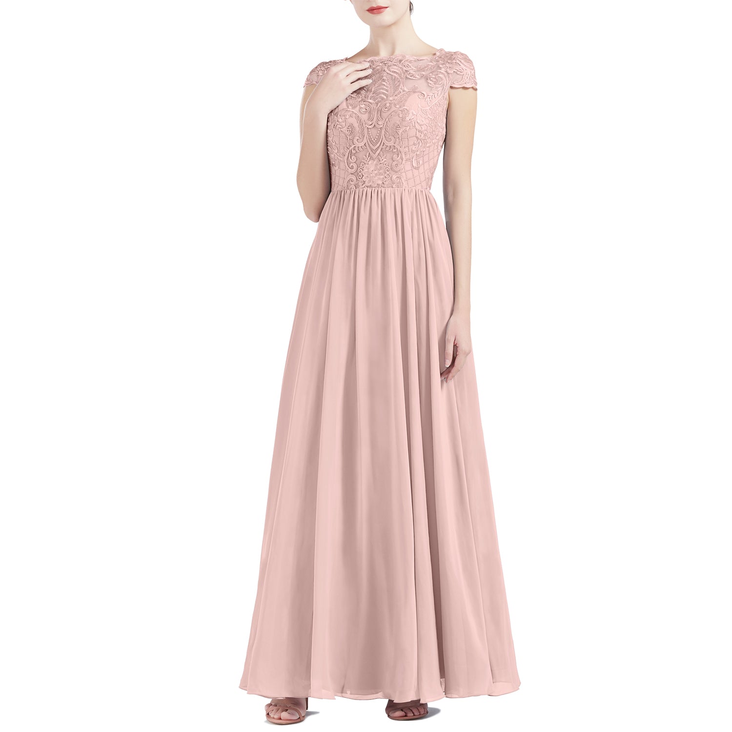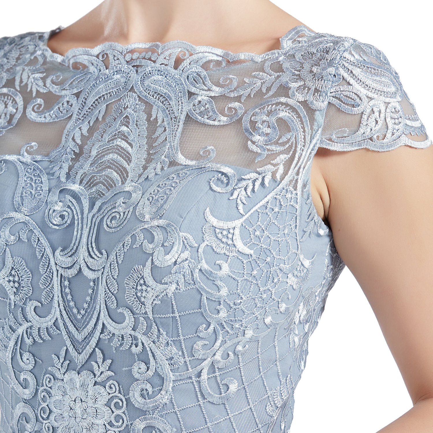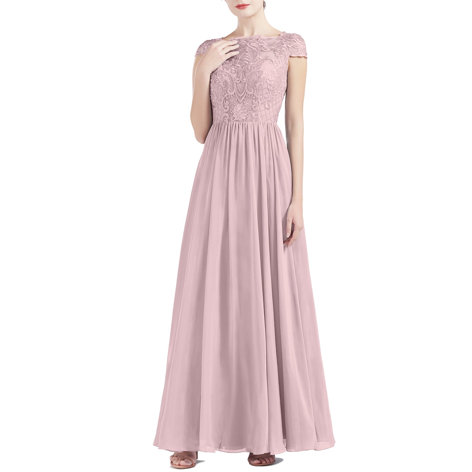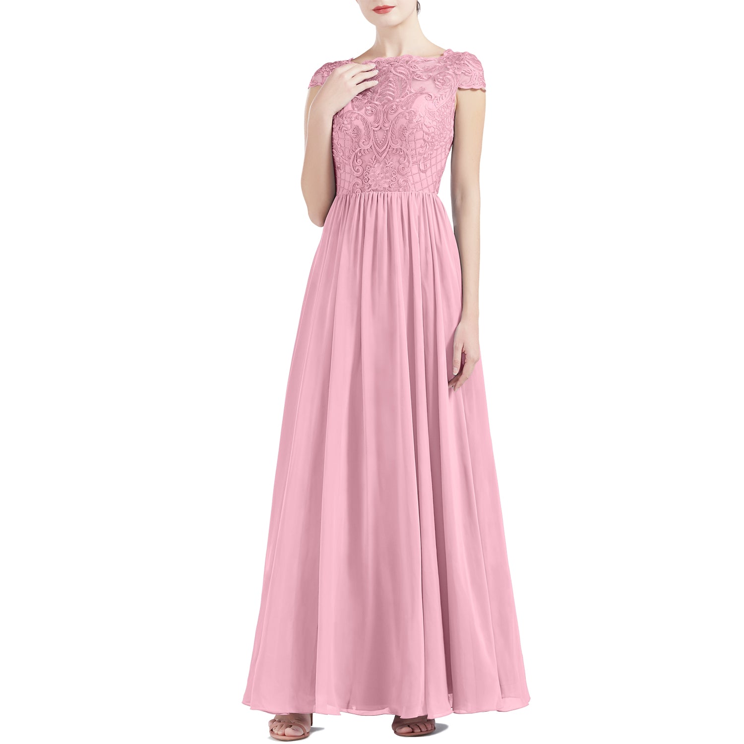 MACloth Women Cap Sleeve Scoop Lace Long Wedding Mother Bride Dresses Formal