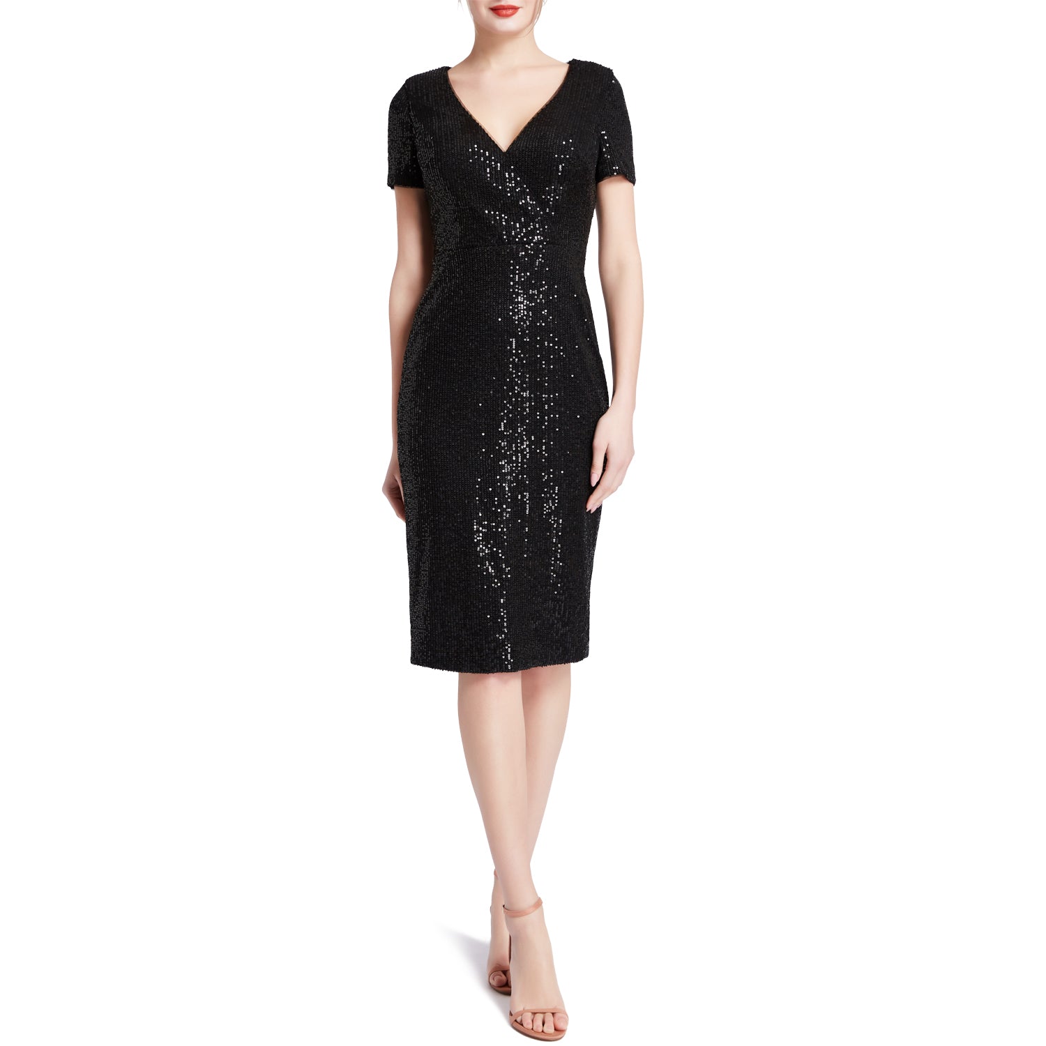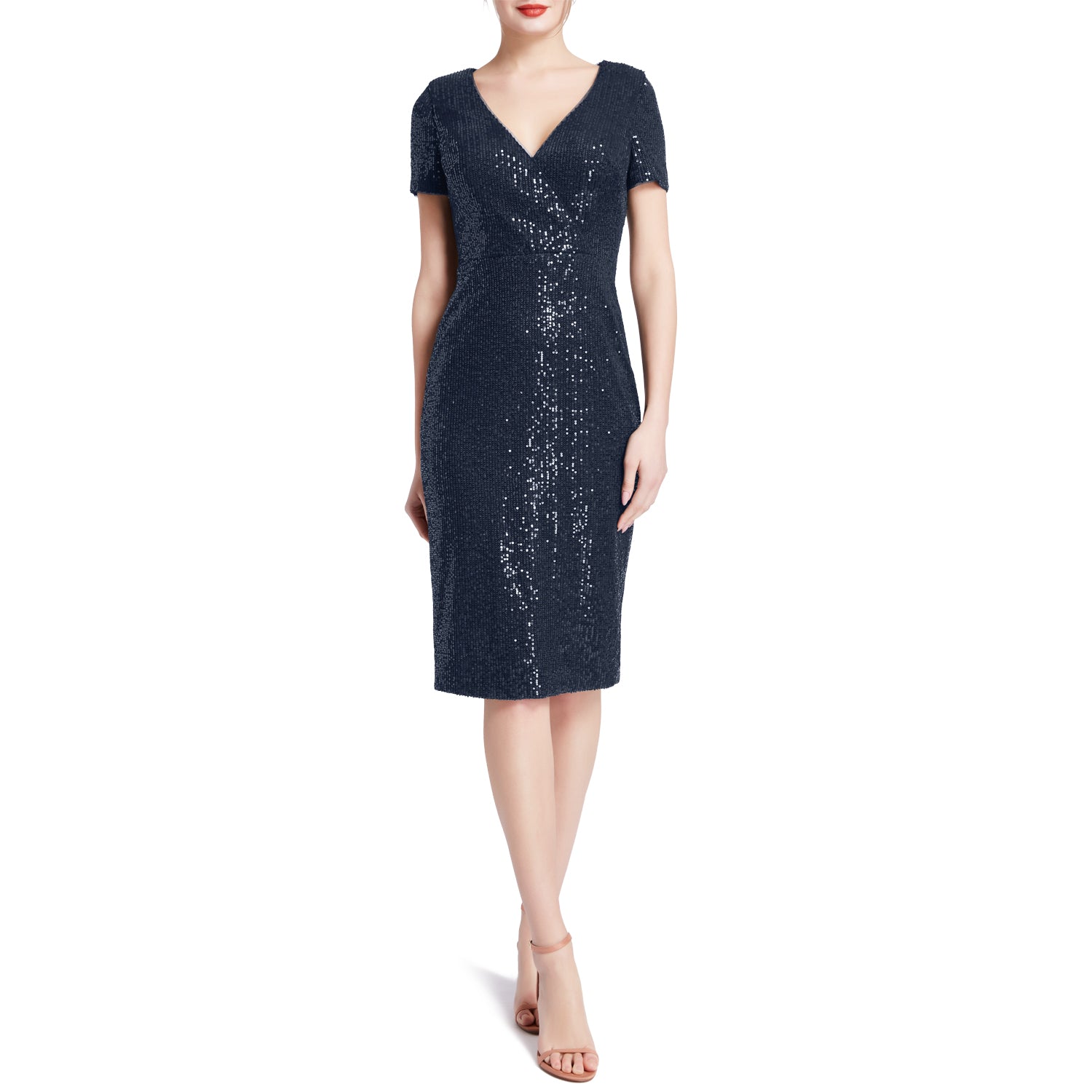 MACloth Women V Neck Short Sleeves Knee Length Sequin Casual Cocktail Dresses