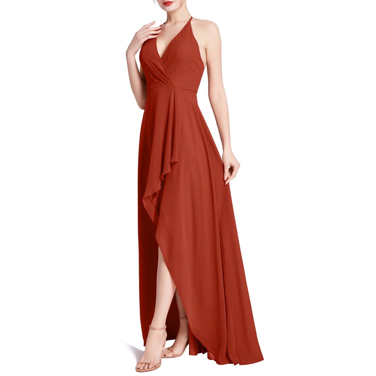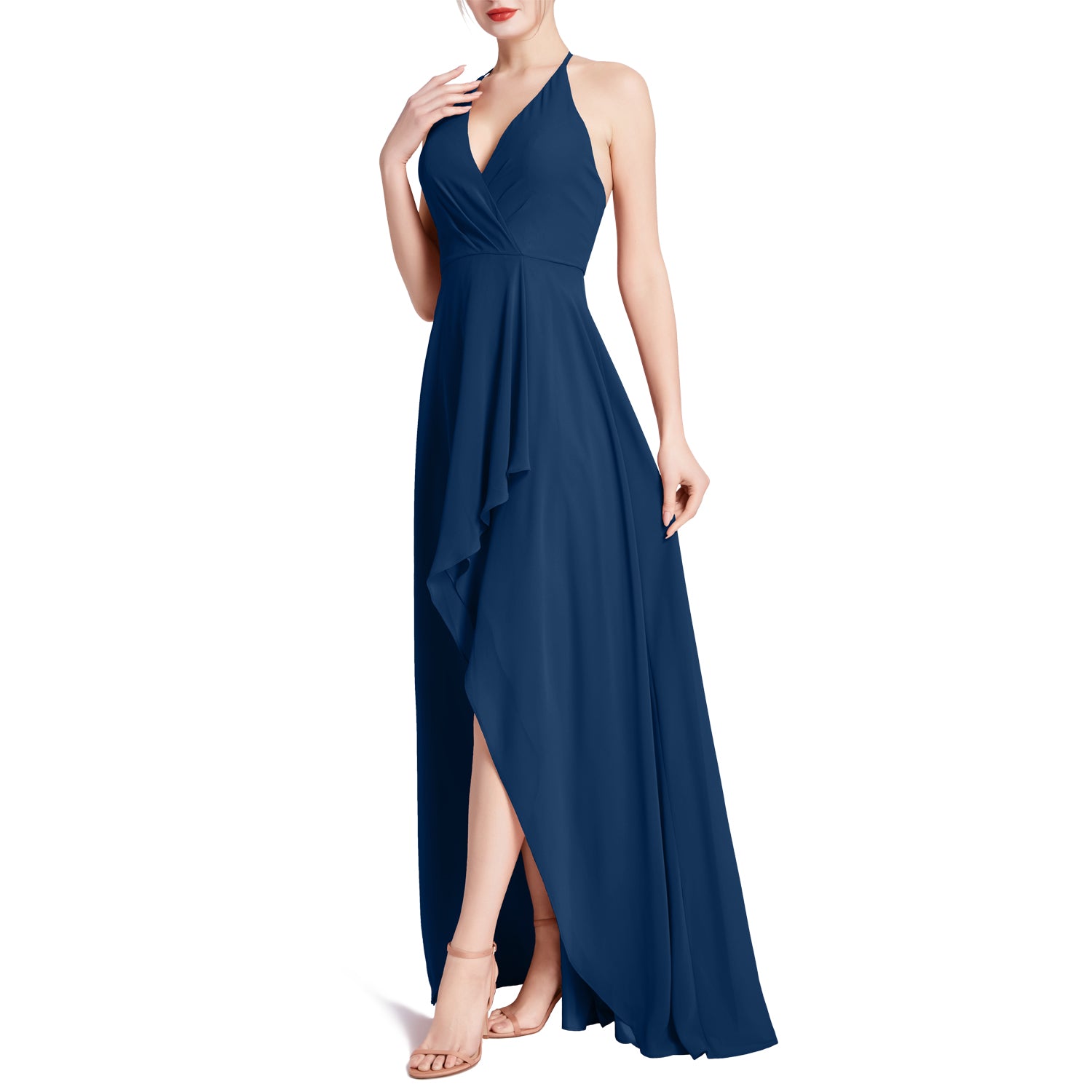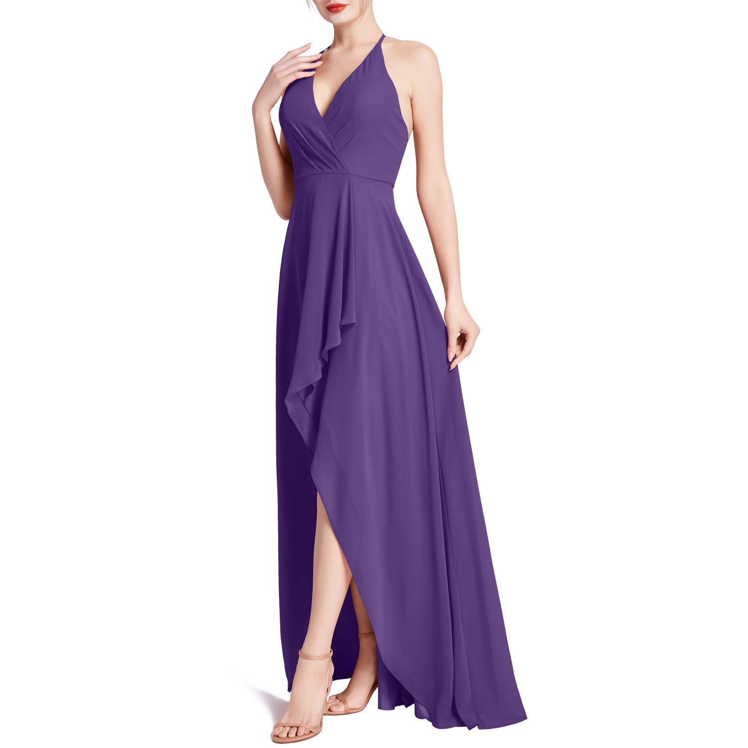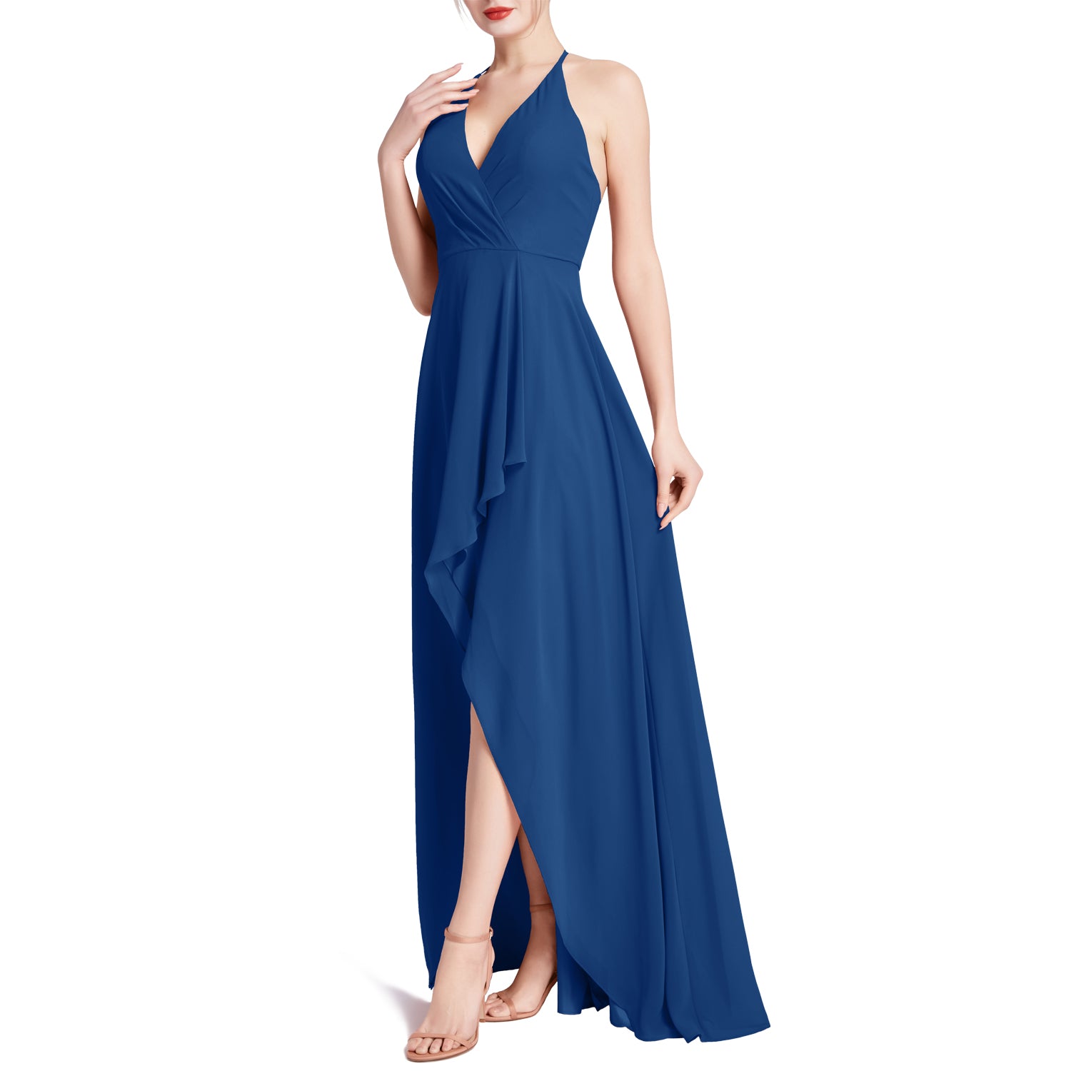 MACloth Women V Neck Halter Hi Lo Long Wedding Party Bridesmaid Dresses