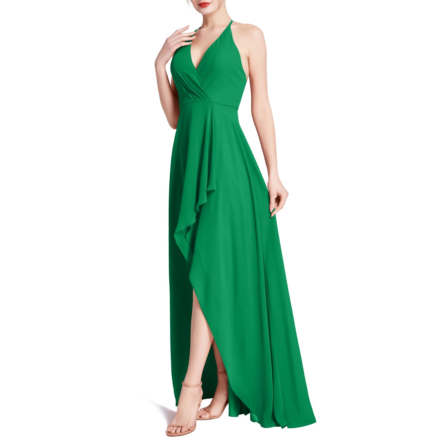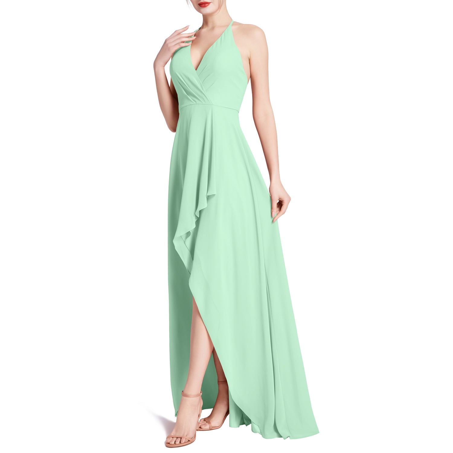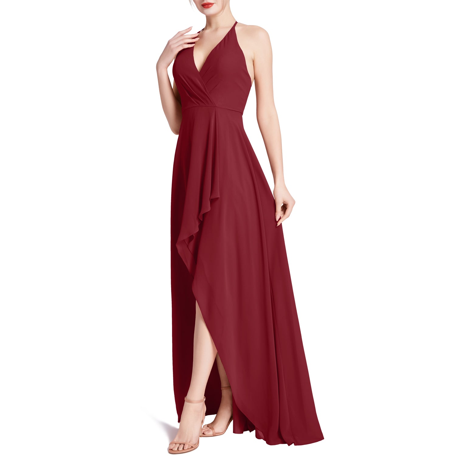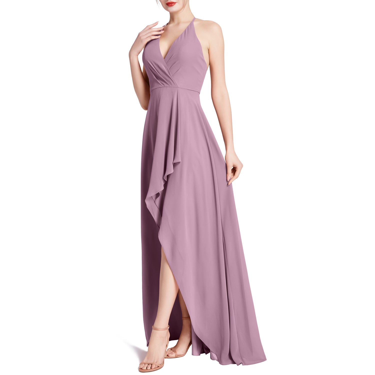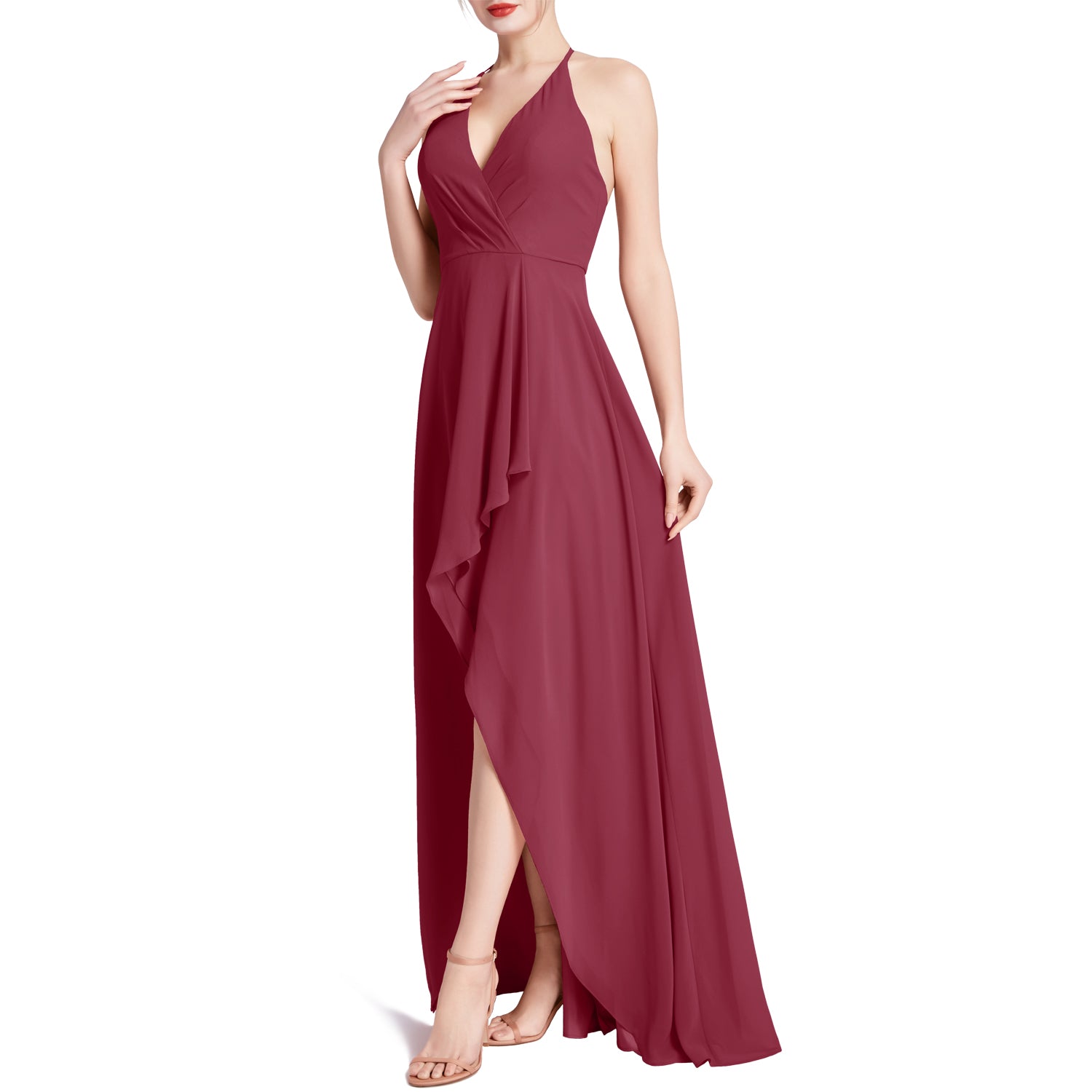 MACloth Women V Neck Halter Hi Lo Long Wedding Party Bridesmaid Dresses