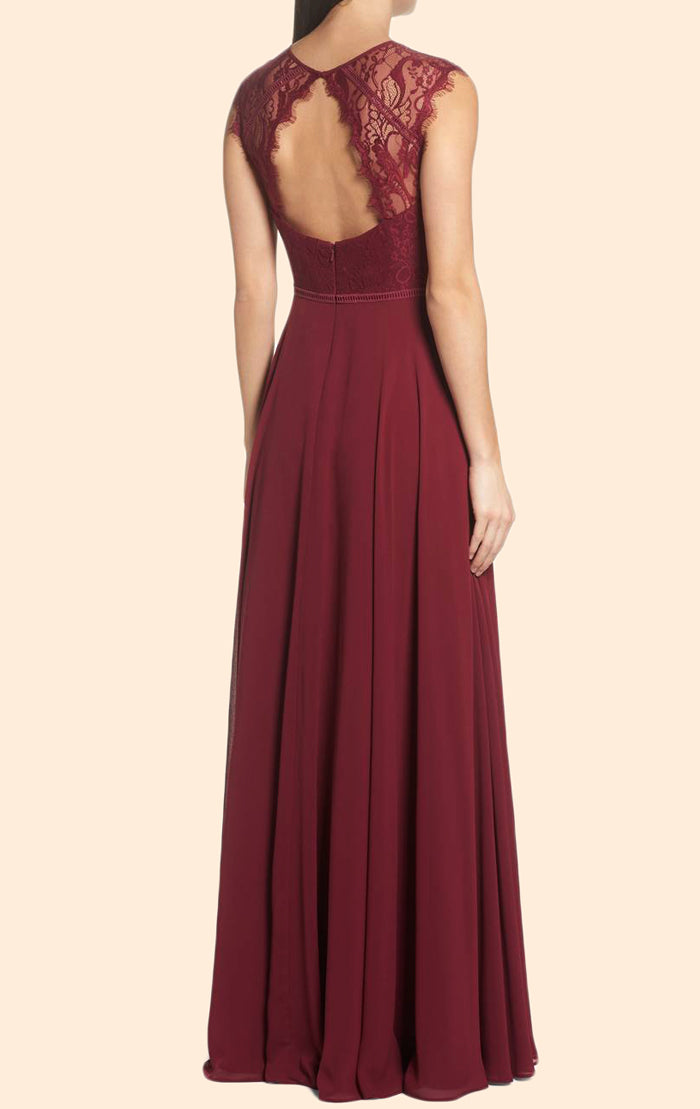 MACloth Cap Sleeves Lace Chiffon Long Prom Dress Burgundy Formal Evening Gown