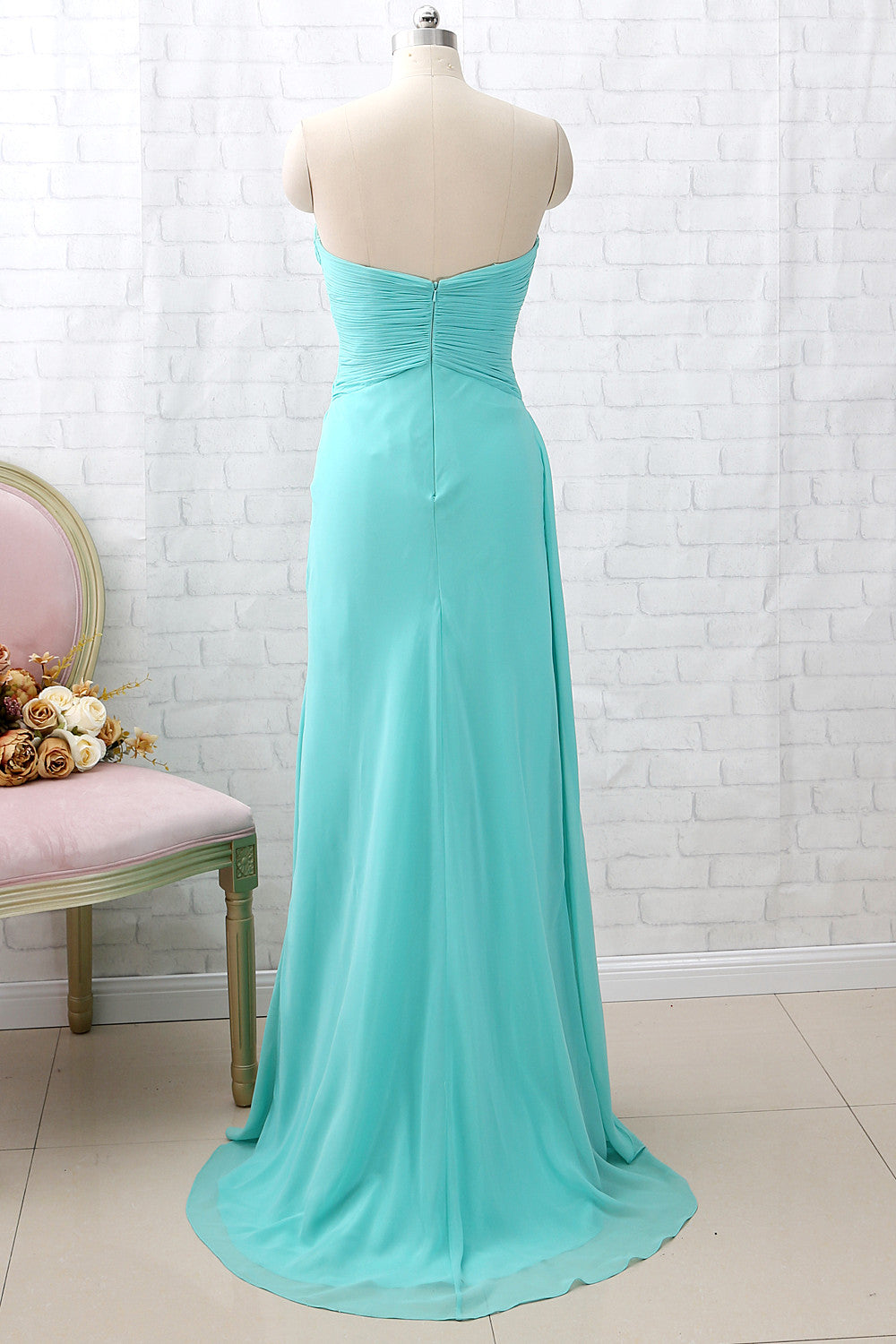 Vestido de dama de honor de gasa largo con escote en forma de corazón y sin tirantes MACloth, vestido de fiesta de boda YuJinXiang