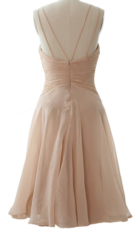 Vestido de fiesta largo de gasa con escote halter y espalda cruzada en color melocotón de MACloth