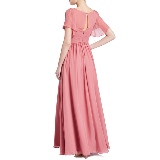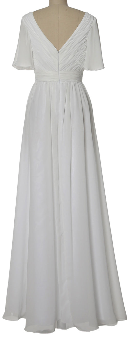 MACloth Vestidos de dama de honor románticos para fiesta de boda con cuello en V y manga corta para mujer