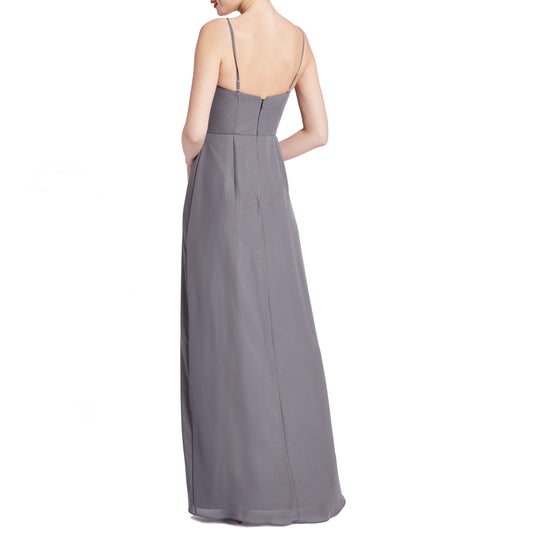 MACloth Mujeres Cuello en V Volantes Gasa Largo Boda Fiesta Dama de Honor Vestidos Abertura