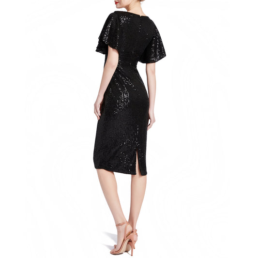 MACloth - Vestidos de cóctel de corte imperio con lentejuelas, escote en V, mangas de ángel con volantes y cortos para mujer