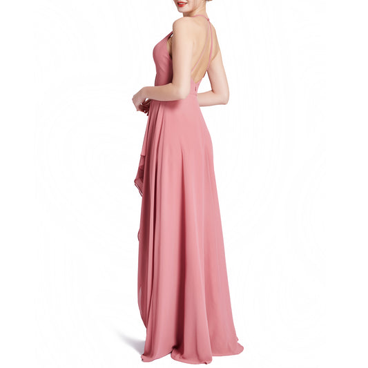 MACloth Vestidos de dama de honor para fiesta de boda con escote en V y cuello halter, largos e hi-lo para mujer
