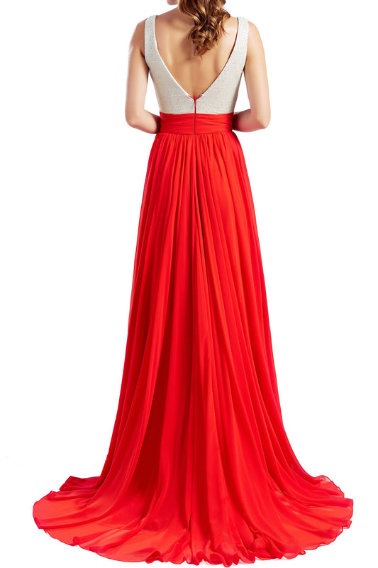 MACloth Vestido de noche formal con escote en V sin mangas para mujer, vestidos de fiesta para bodas en la playa