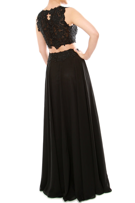 MACloth Vestido largo de encaje de dos piezas con cuello redondo para mujer para fiesta de graduación y regreso a casa Vestido de noche para gala