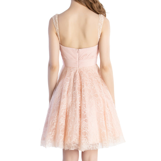 MACloth Mujeres Escote Corazón Plisado Encaje Corto Fiesta de Boda Dama de Honor Vestidos LBD