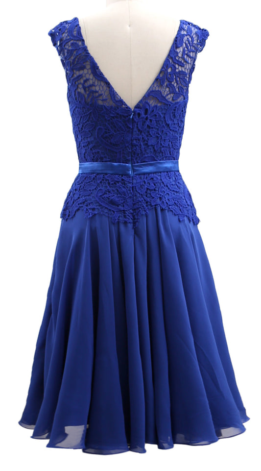 Vestido de fiesta de cóctel formal de noche corto de gasa con encaje y escote en V para mujer de MACloth