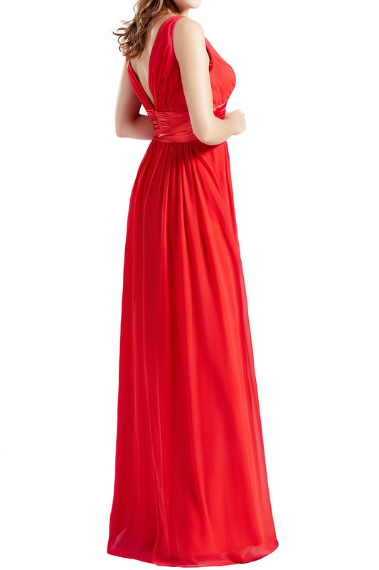 Vestido de dama de honor largo con escote en V y sin mangas de gasa de MACloth para mujer