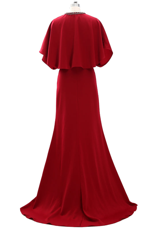 MACloth Vestido de noche con mangas abullonadas y cuentas de crepé para mujer Vestidos para madre de la novia