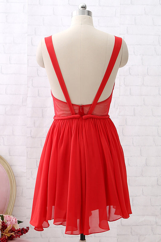 Vestido mini de gasa con escote en V y tirantes de MACloth para fiesta de graduación y regreso a casa