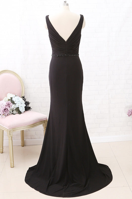 Vestido de fiesta largo de sirena con escote en V y tirantes MACloth en color negro, vestido de noche formal de jersey