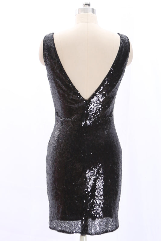 Vestido corto de fiesta con escote en V, tirantes y lentejuelas de MACloth