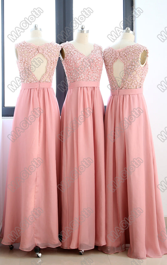Vestido de fiesta largo de gasa con escote en V y tirantes MACloth, de encaje y espalda abierta, color rosa ruborizado