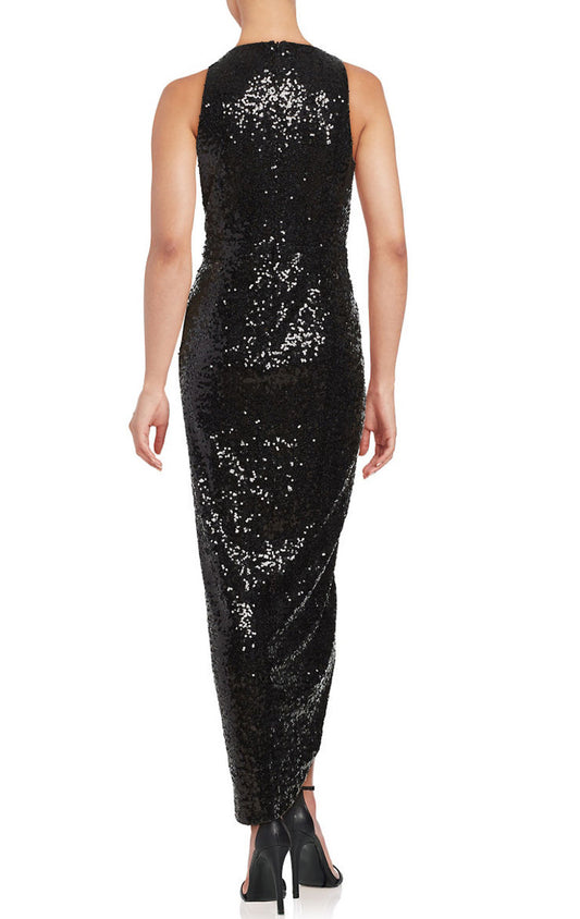 Vestido de dama de honor con escote en V, tirantes finos y lentejuelas, color negro, para noche formal