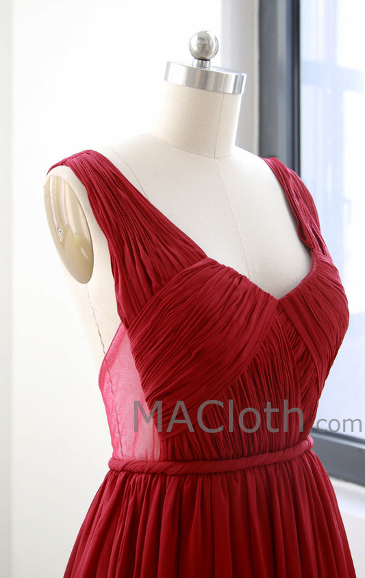 Vestido de fiesta largo de gasa con escote en V y tirantes MACloth, vestido formal rojo