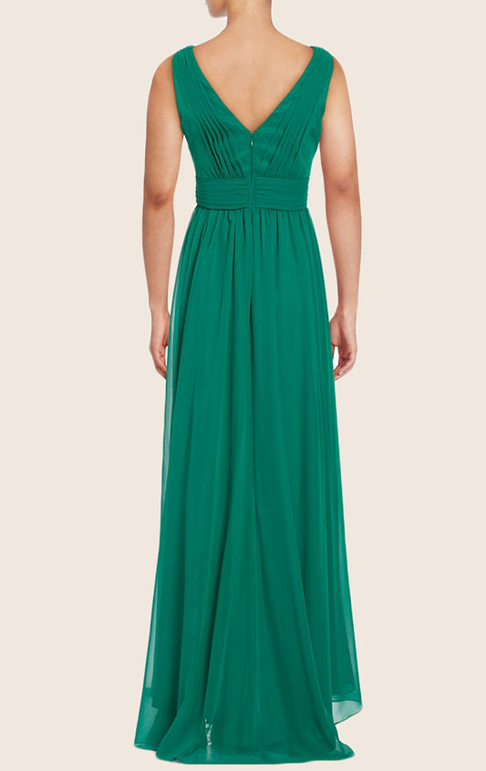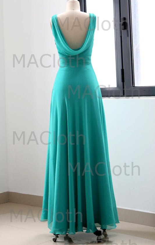 Vestido de dama de honor largo de gasa con escote en V y tirantes MACloth, vestido de fiesta sencillo