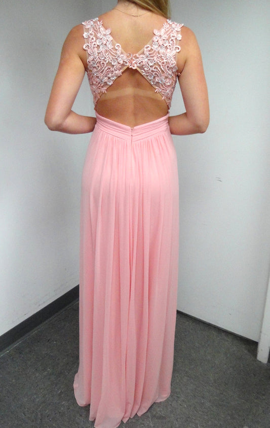 Vestido de fiesta largo de gasa con escote en V y tirantes MACloth, de color rosa