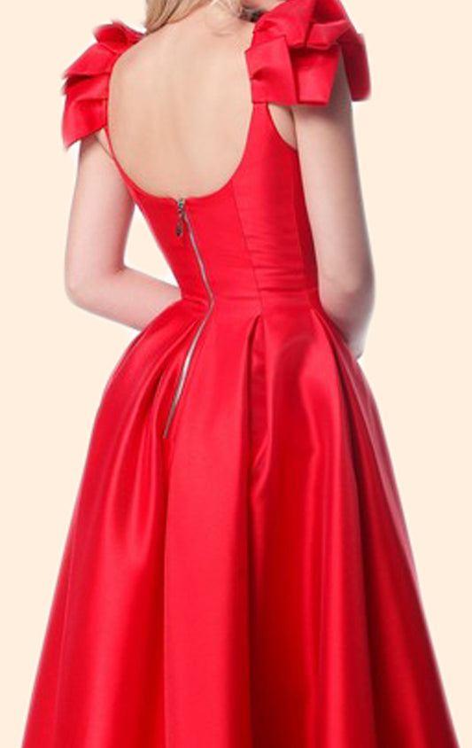 Vestido de fiesta largo con escote redondo y tirantes MACloth, vestido de noche formal rojo