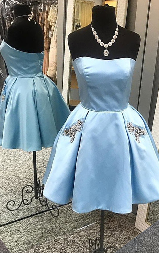 Vestido de fiesta de boda azul cielo minivestido de fiesta de graduación con escote en forma de corazón sin tirantes de MACloth
