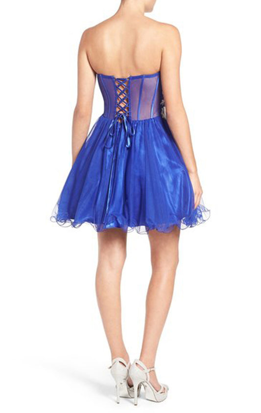 Vestido de fiesta azul real mini de tul con escote en forma de corazón y sin tirantes de MACloth