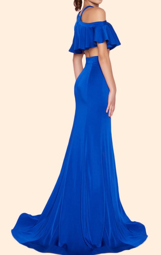 Vestido de fiesta largo de sirena con escote halter y hombros descubiertos de MACloth, vestido de noche formal azul real 10633