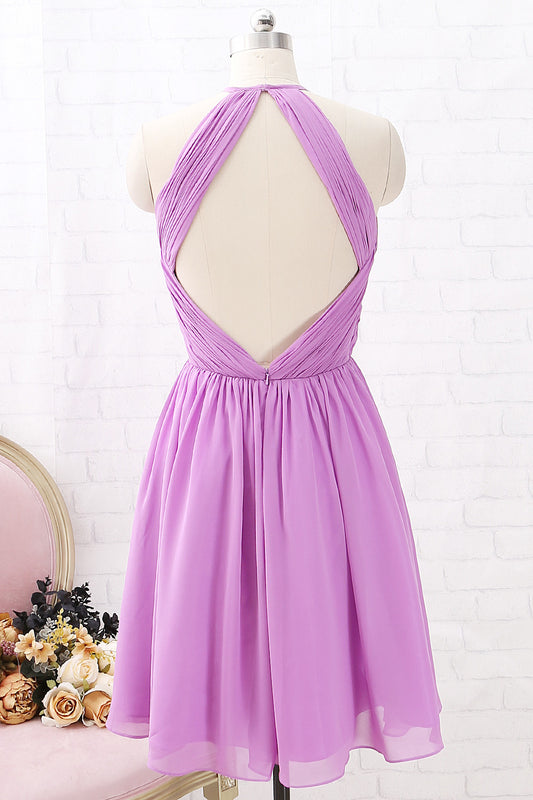 Vestido de dama de honor corto con cuello halter y espalda abierta de gasa de MACloth