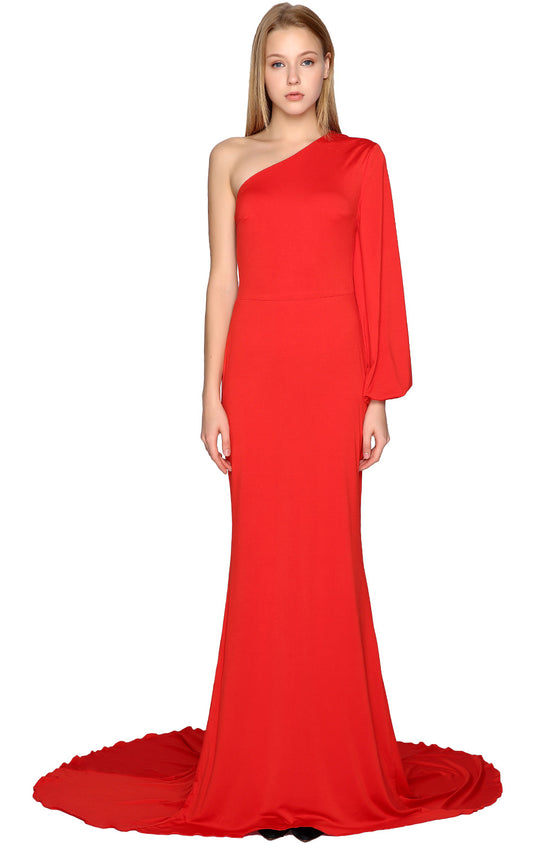 Vestidos de fiesta de sirena MACloth de un hombro con mangas largas y jersey, vestido de noche formal