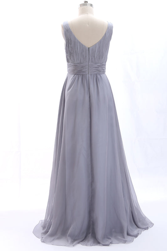Vestido largo de gasa con escote en V y tirantes MACloth para dama de honor, color plateado, para fiesta de boda, formal