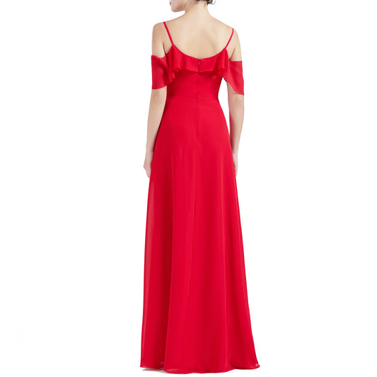 Vestido de dama de honor largo de gasa con escote en V y tirantes MACloth con cinturón, vestido de noche formal rojo