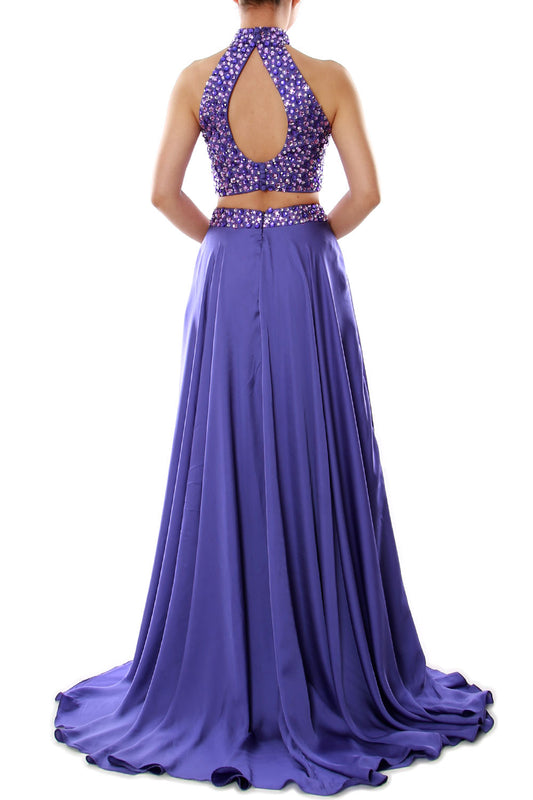 Vestido de fiesta de dos piezas para mujer de MACloth, vestido de noche formal largo de gasa con cuello alto
