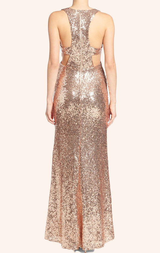 Vestido de dama de honor largo con escote en V y lentejuelas de MACloth, vestido de noche formal en oro rosa