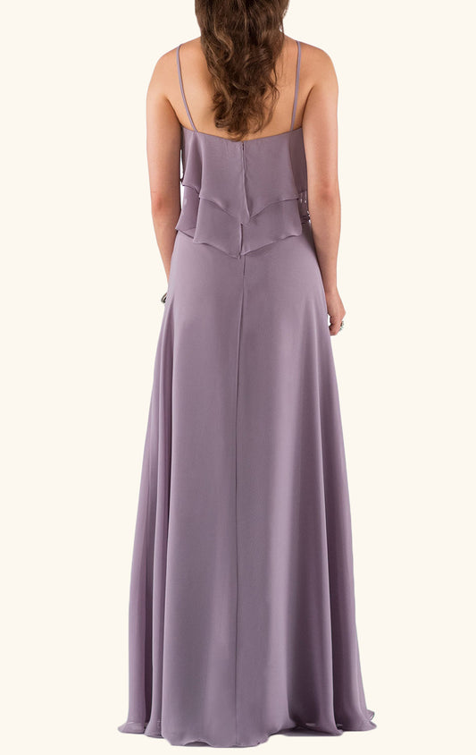 Vestido formal largo de gasa con escote redondo y tirantes finos de MACloth para dama de honor