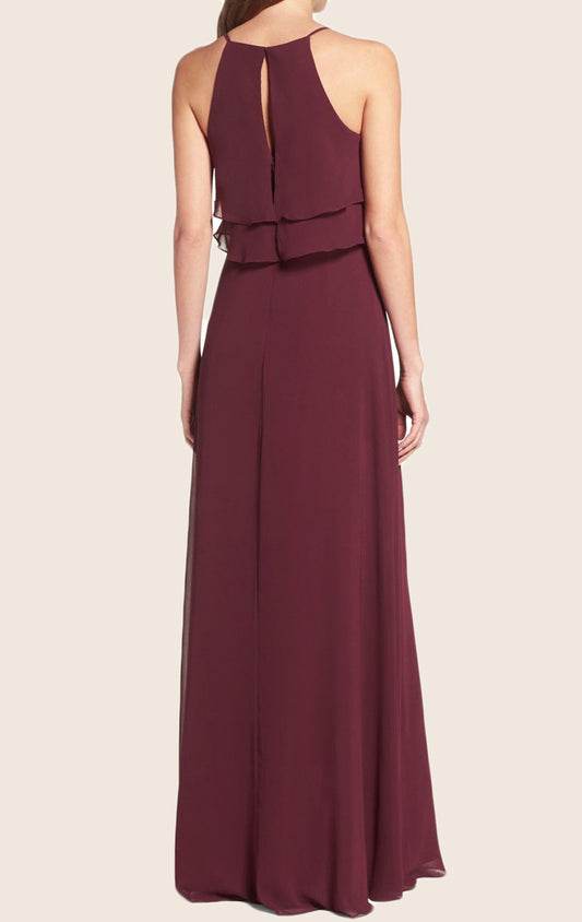 Vestido largo de dama de honor de gasa con escote en V y tirantes MACloth, vestido de fiesta con volantes