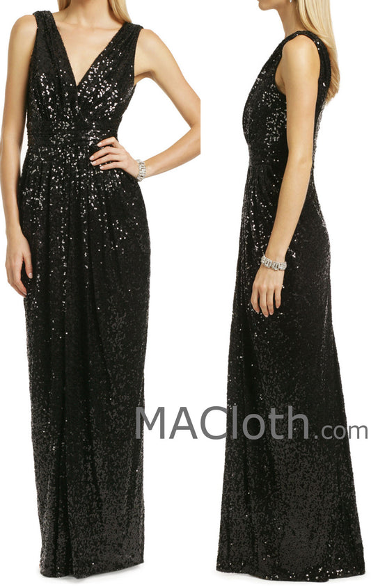 Vestido de dama de honor largo con escote en V y lentejuelas de MACloth, vestido de noche formal