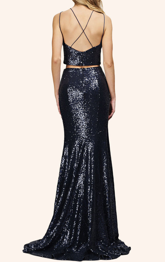 Vestido de fiesta largo de dos piezas con lentejuelas y corte sirena de MACloth, vestido formal azul marino oscuro