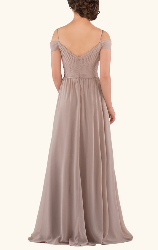 Vestido de dama de honor de gasa con hombros descubiertos y escote en V color champán de MACloth