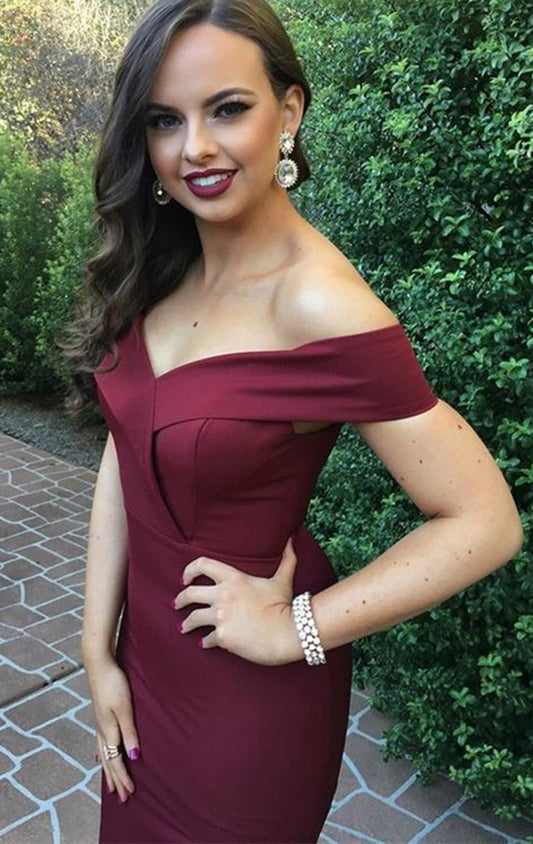 Vestido de fiesta de jersey burdeos con hombros descubiertos de MACloth, vestido de noche formal con abertura