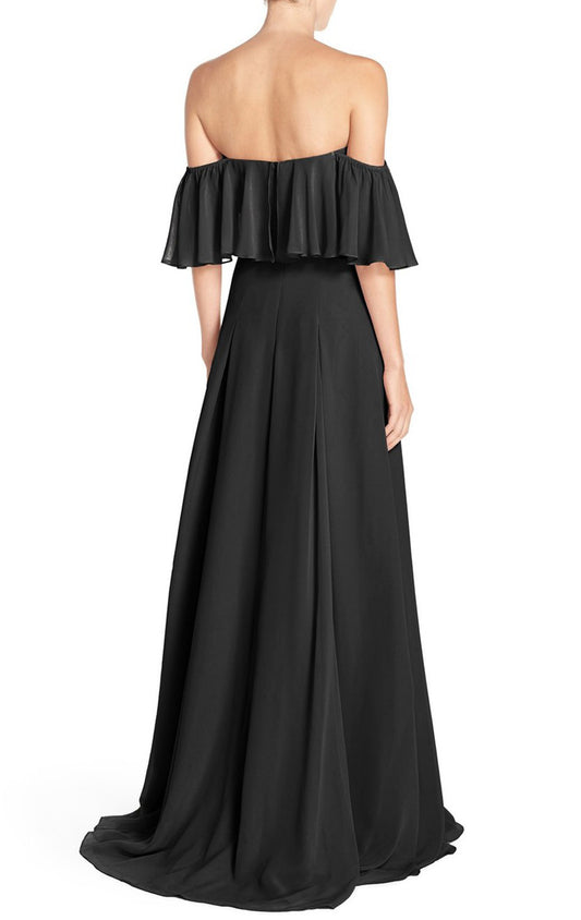 Vestido de dama de honor largo de gasa con hombros descubiertos de MACloth, vestido formal de noche negro