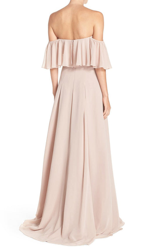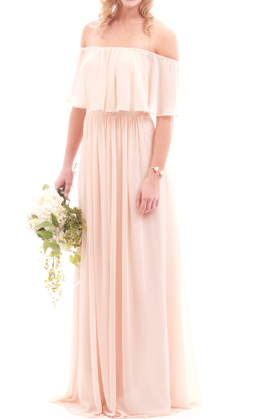 Vestido largo de gasa para dama de honor con hombros descubiertos de MACloth