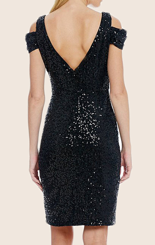 Vestido de cóctel con escote en V y lentejuelas de MACloth, minivestido formal negro