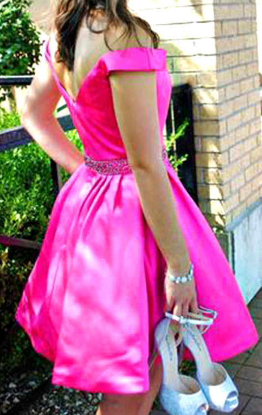 Vestido corto rosa con hombros descubiertos de MACloth para fiesta de graduación y regreso a casa Vestido rosa para fiesta de boda