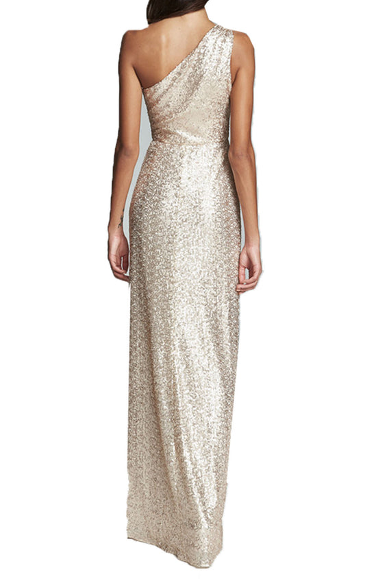 Vestido de fiesta largo con lentejuelas y un hombro de MACloth, vestido de noche formal color champán